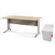 Bureau droit individuel 160 x 80 cm + double piètement + voile de fond + caisson mobile. Plateau chêne/piètement aluminium
